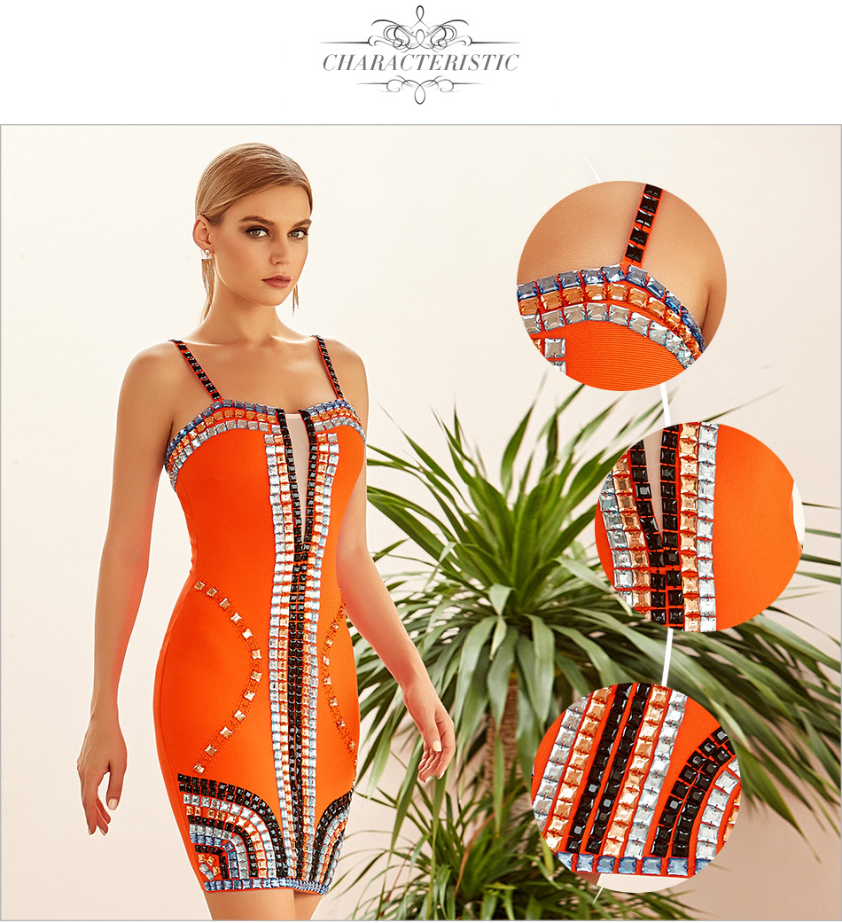 Lace Color Crystal Long Sleeve Women Party Dress Hot Drilling Evening Dress